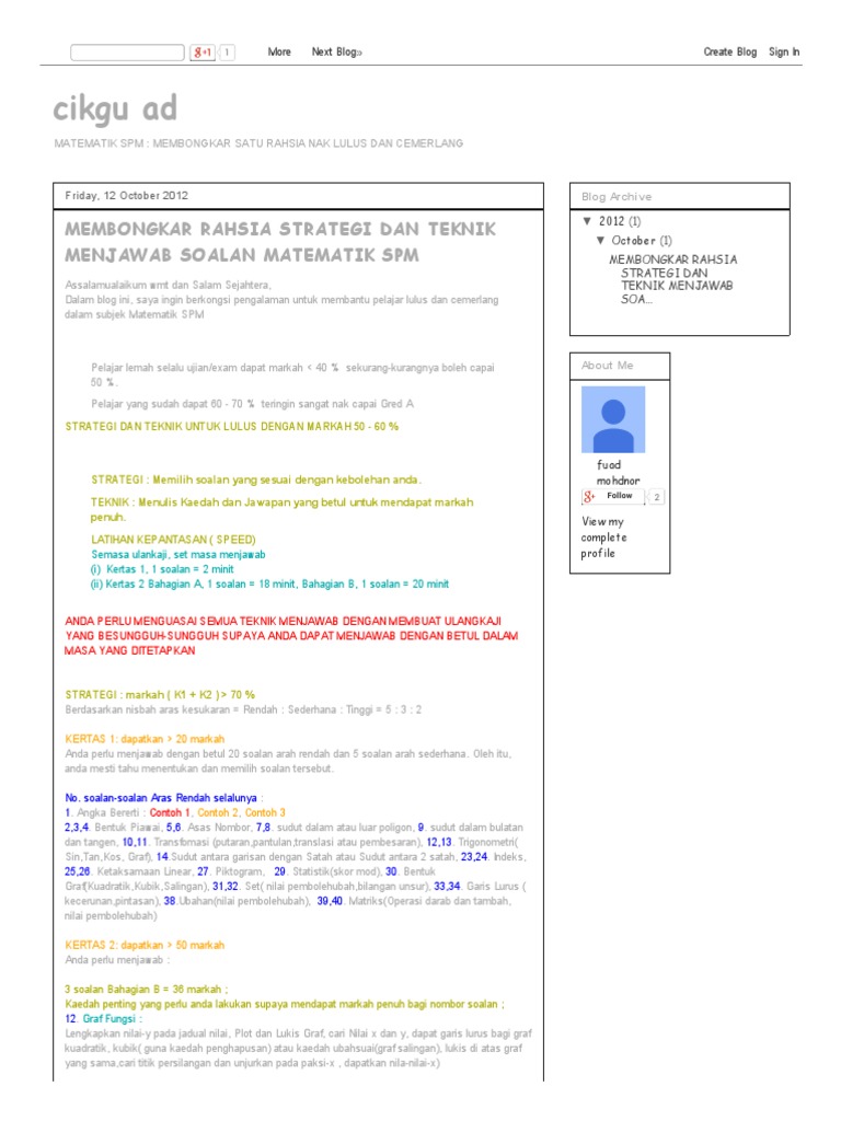 Cikgu Ad Membongkar Rahsia Strategi Dan Teknik Menjawab Soalan Matematik Spm Pdf
